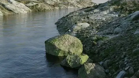 анимация каменистого берега реки в блендер 3д